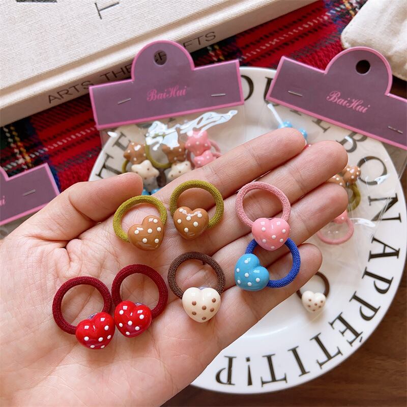 【予約】 かわいい水玉模様ハートヘアゴム 子供ヘアアクセサリー sn123526861
