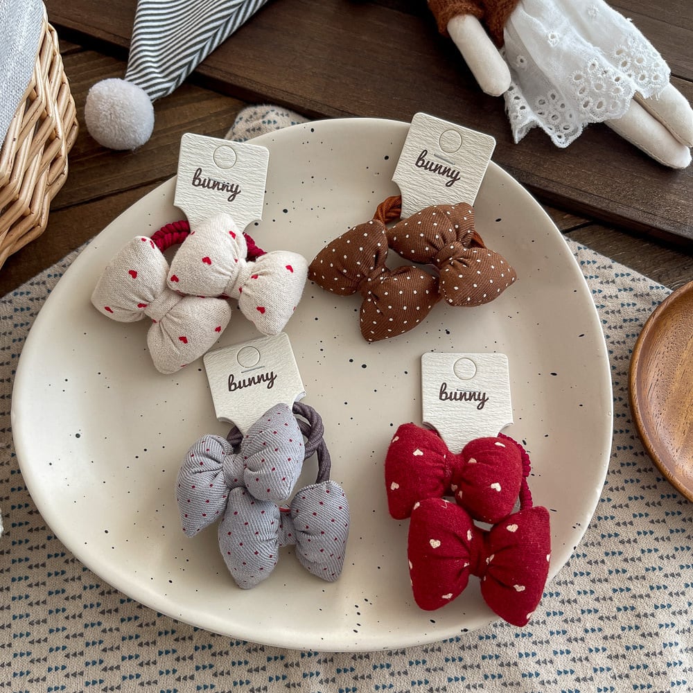 【予約】 水玉模様リボンヘアゴム 子供ヘアアクセサリー