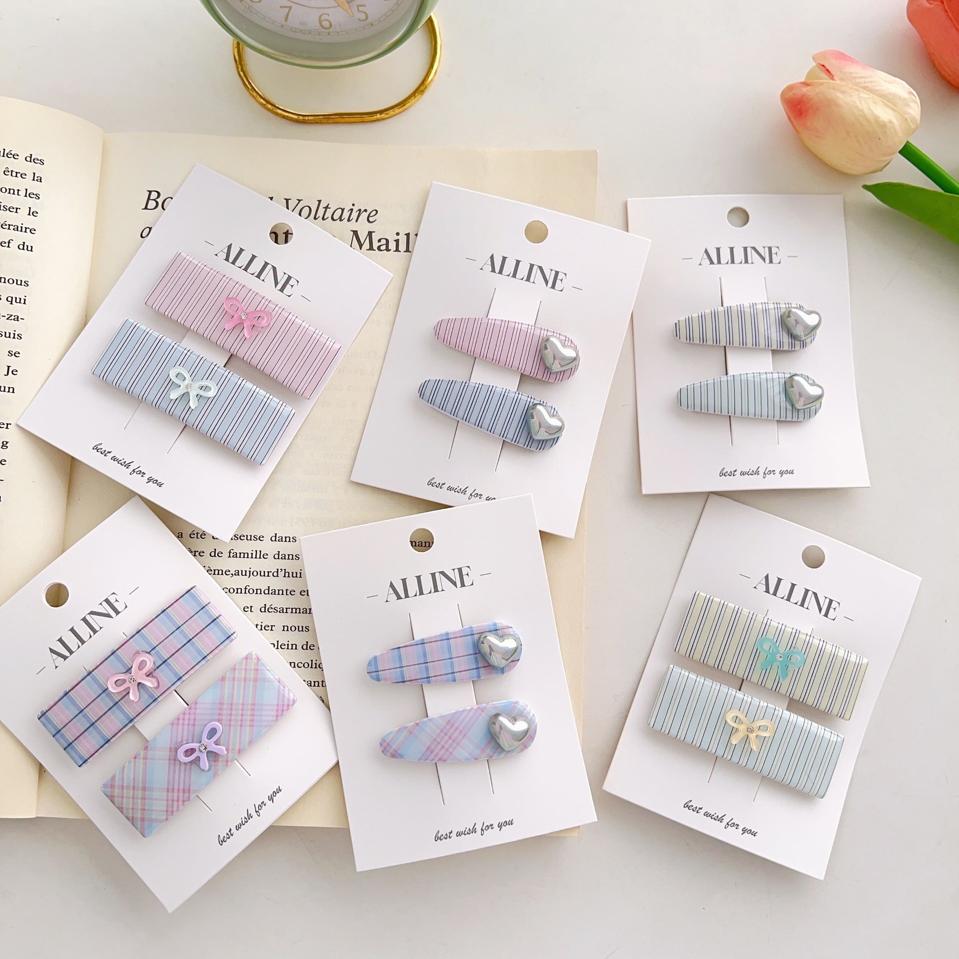 予約ー チェック柄サイドヘアクリップ 子供ヘアアクセサリー